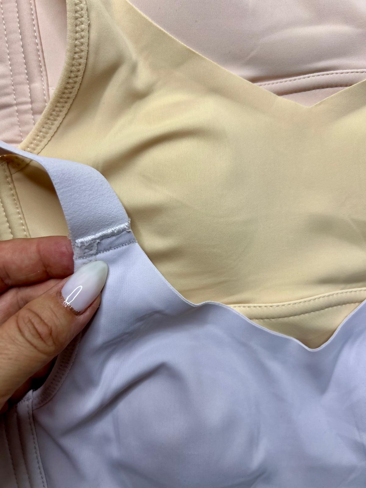 Este corpiño está confeccionado en licra doble, sin costuras, lo que garantiza mayor suavidad al tacto y un calce mucho más cómodo. Al ser todo doble, ofrece excelente contención sin marcar ni generar pliegues indeseados.